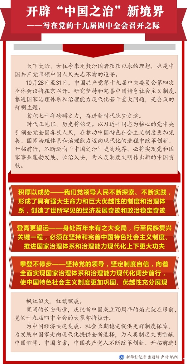 开辟“中国之治”新境界——写在党的十九届四中全会召开之际