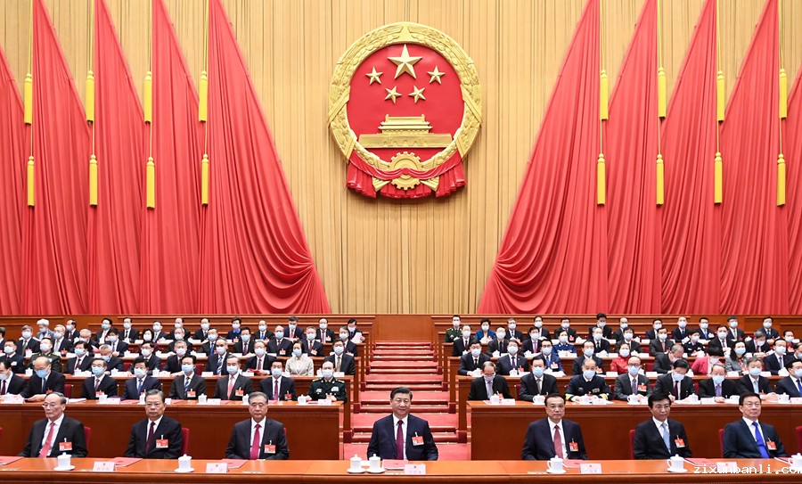 习近平、李克强、汪洋、王沪宁、赵乐际、韩正、王岐山和大会主席团成员在主席台就座。