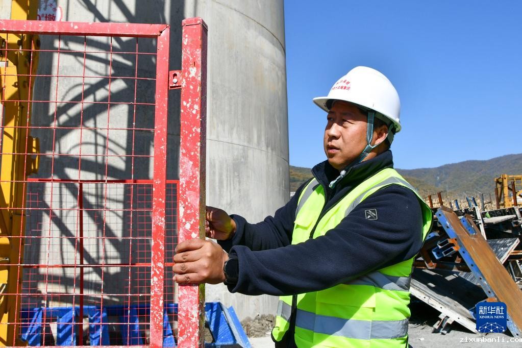 10月11日,中铁十五局集团五公司沈白高铁项目党支部书记杜海波在工作中。 新华社发(张臻月 摄)
