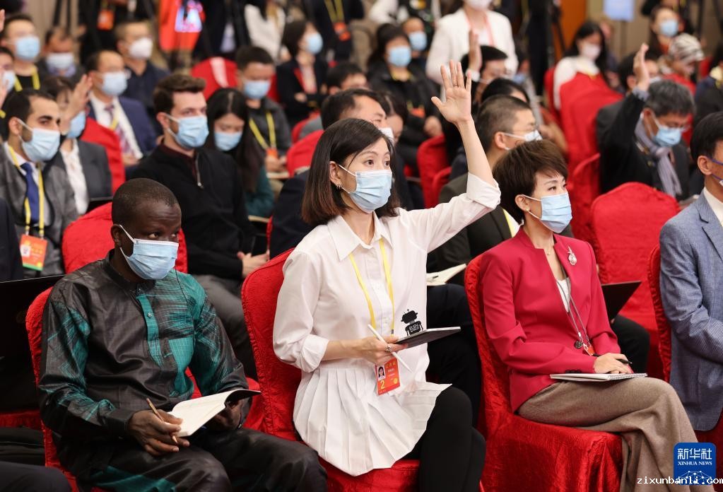 这是记者在分会场举手提问。新华社记者 殷刚 摄