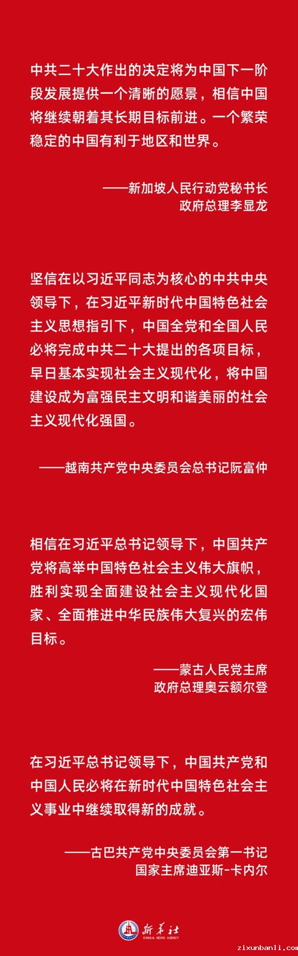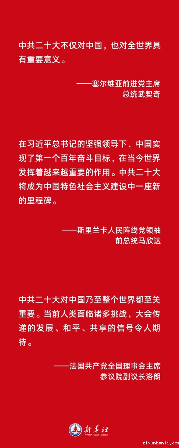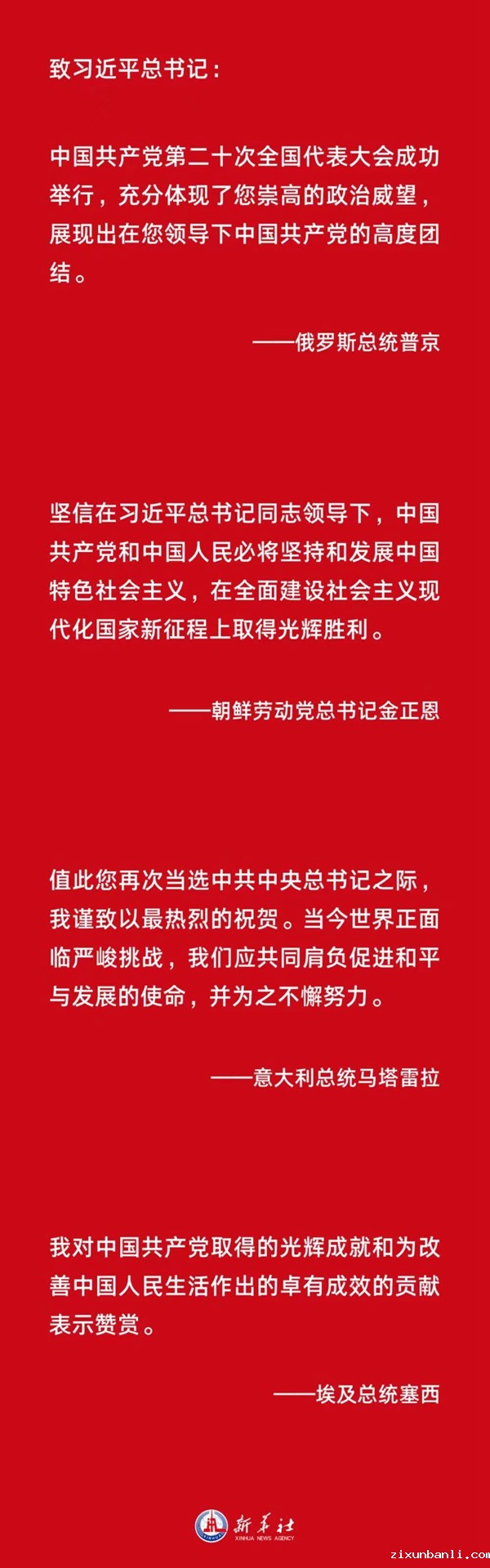 ——各国政党政要热烈祝贺习近平当选中共中央总书记和中共二十大成功举行