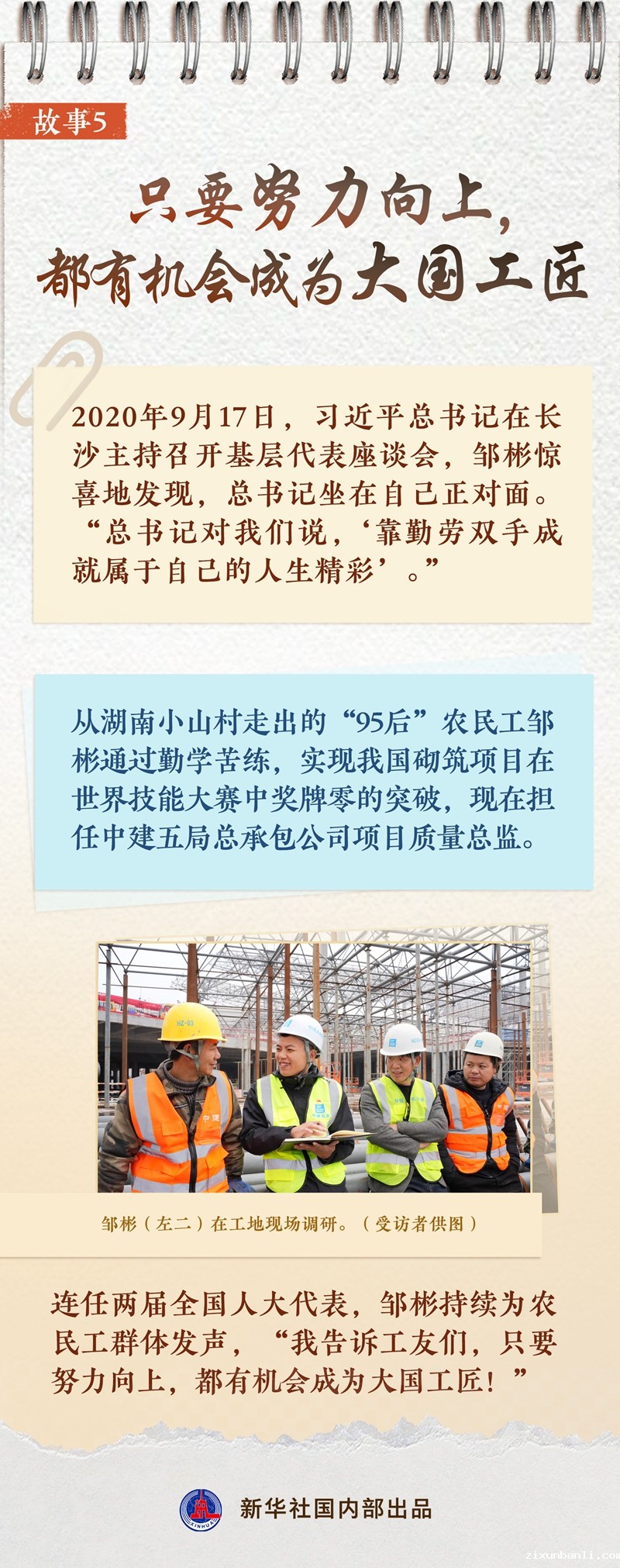新华社3月2日播发通讯《总书记的嘱托激励我们一路向前——来自全国两会代表委员的心声》。全国两会前夕,新华社记者回访21位代表委员,听他们讲述履职故事,回望攻坚克难的奋斗足迹,传递人民群众的殷切期盼,描绘高质量发展新的蓝图,激荡民族复兴的火热情怀。记者从中选取一部分故事与大家分享。