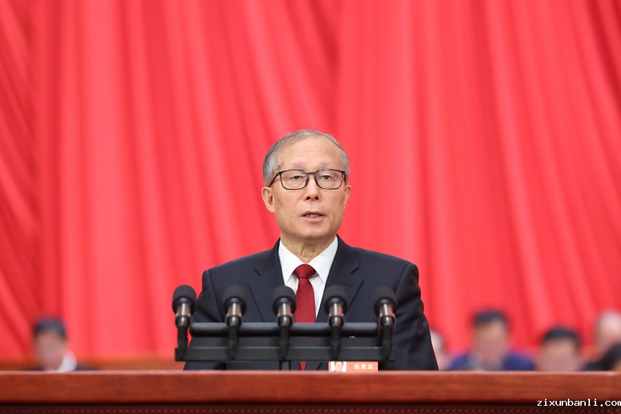 3月5日,第十四届全国人民代表大会第二次会议在北京人民大会堂开幕。受全国人大常委会委托,全国人大常委会副委员长李鸿忠作关于国务院组织法修订草案的说明。新华社记者 刘卫兵 摄