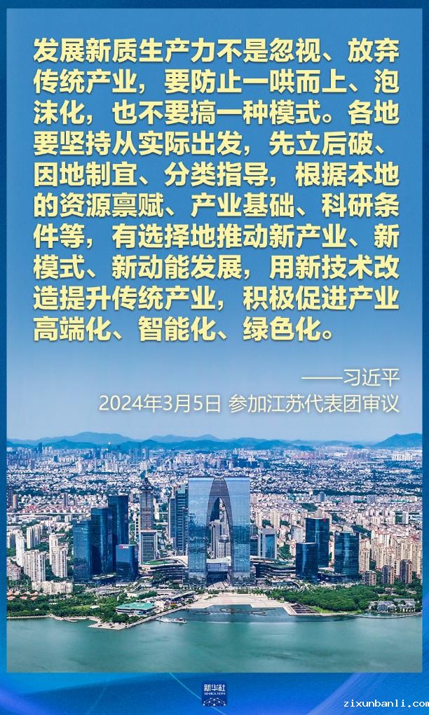 5日下午,习近平在参加他所在的十四届全国人大二次会议江苏代表团审议时强调,因地制宜发展新质生产力。