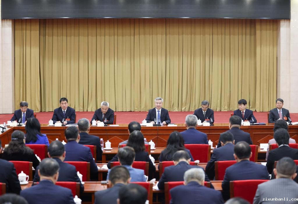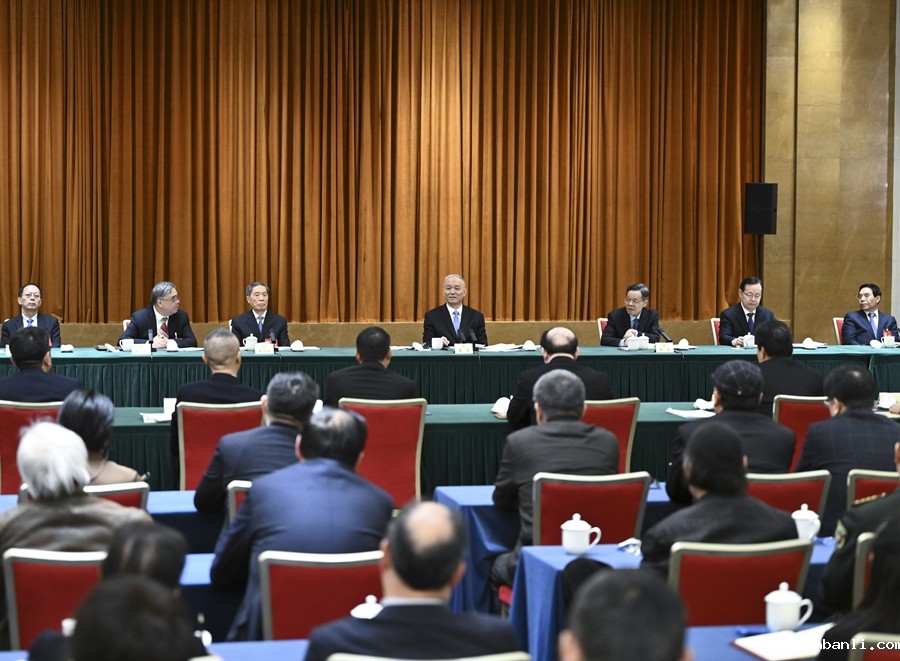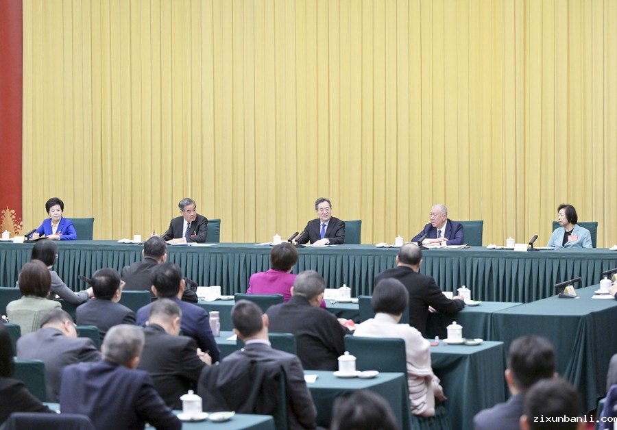3月6日,中共中央政治局常委、全国政协主席王沪宁参加全国政协十四届二次会议少数民族界委员联组会。新华社记者 申宏 摄
