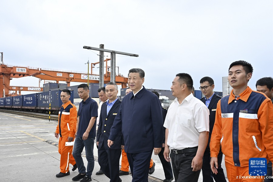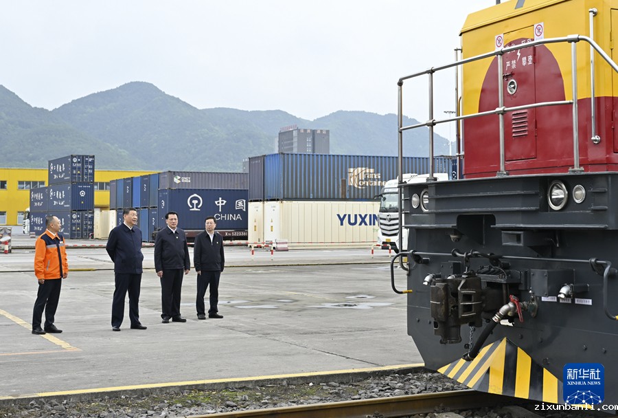 4月22日至24日,中共中央总书记、国家主席、中央军委主席习近平在重庆考察。这是22日下午,习近平在重庆国际物流枢纽园区重庆铁路集装箱中心站考察。新华社记者 岳月伟 摄