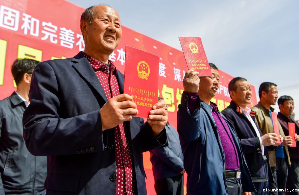 内蒙古自治区呼和浩特市武川县耗赖山乡村民展示领到的农村土地承包经营权证(2018年4月12日摄)。新华社记者 连振 摄
