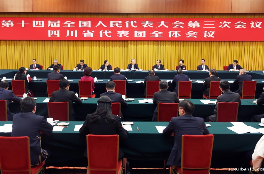 3月5日下午,中共中央政治局常委、全国人大常委会委员长赵乐际参加他所在的四川代表团审议。新华社记者 刘卫兵 摄