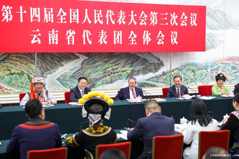 3月5日下午,中共中央政治局常委、国务院总理李强来到他所在的云南代表团,同代表们一起审议政府工作报告。新华社记者 刘彬 摄