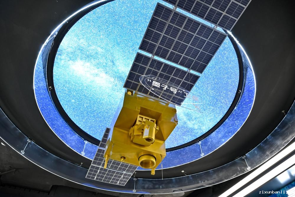 这是2025年7月1日在位于合肥的中电信量子信息科技集团有限公司科技体验馆内拍摄的“墨子号”量子卫星模型。新华社记者张铖摄