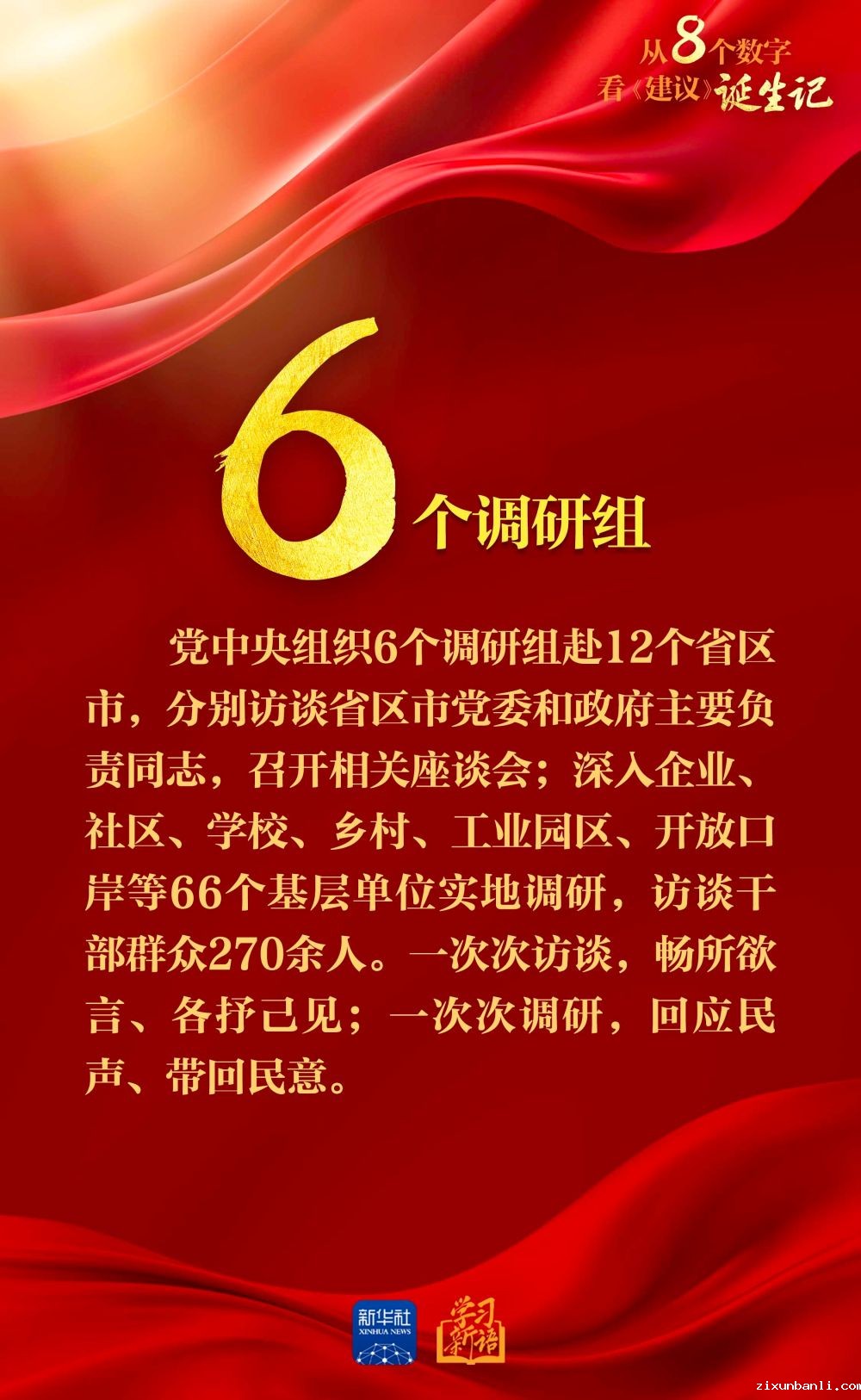 今天,新华社播发通讯《为基本实现社会主义现代化奠定更加坚实的基础——<中共中央关于制定国民经济和社会发展第十五个五年规划的建议>诞生记》。通过一组数字,一起来看这份纲领性文件是如何诞生的。