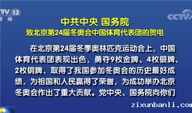 在北京第24届冬季奥林匹克运动会上,中国体育代表团表现出色,勇夺9枚金牌、4枚银牌、2枚铜牌,取得了我国参加冬奥会的历史最好成绩,为祖国和人民赢得了荣誉,为成功举办北京冬奥会作出了重大贡献。