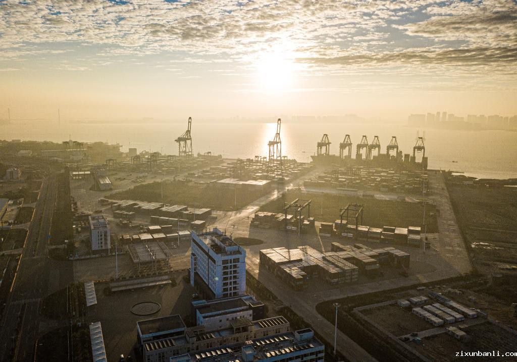 2024年1月1日在海南省洋浦经济开发区拍摄的海南自贸港集装箱航运枢纽——洋浦国际集装箱码头(无人机照片)。新华社记者 蒲晓旭 摄